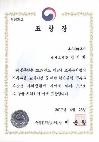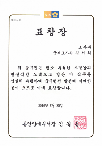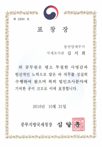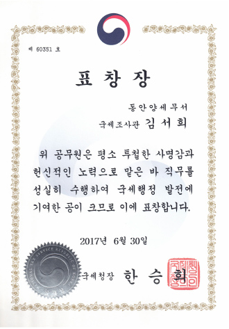 동안양세무서장표창