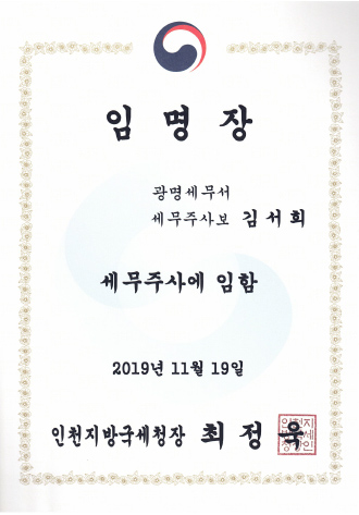 인천지방국세청임명장